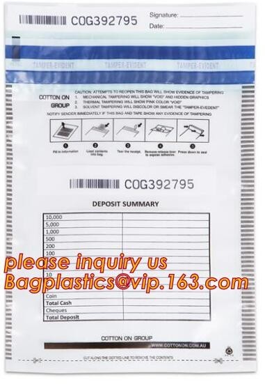 کیسه های سپرده پلاستیکی با نوار امن: کیسه های پلاستیکی ارز کیسه های تسمه نقدی: کیسه های امنیتی سپرده بانکی
