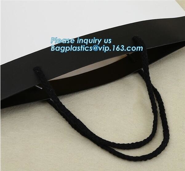 کیسه های هدیه کاغذی دسته دار: کیسه های کادویی براق کیسه های کاغذی آرم چاپ شده را برجسته کنید: کیسه های کاغذ کرافت سفید برای لباس
